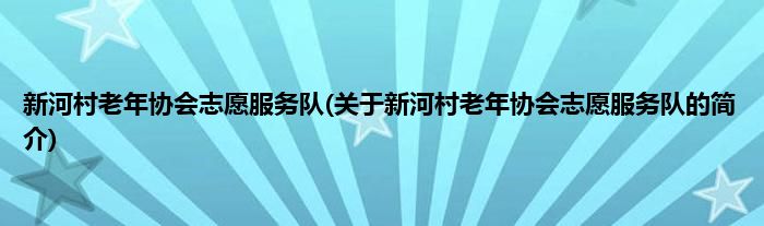 本文关于新河村老年协会志愿服务队的简介就讲解完毕,希望对大家有所帮助。