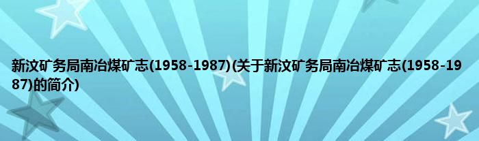 大家好,新汶矿务局南冶煤矿志,1958-1987,关于新汶矿务局南冶煤矿志,1958-1987的简介很多人还不知道,现在让我们一起来看看吧!
