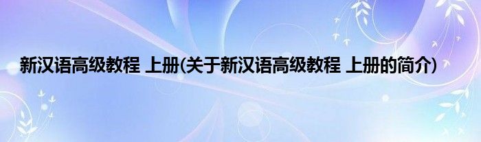 大家好,新汉语高级教程 上册,关于新汉语高级教程 上册的简介很多人还不知道,现在让我们一起来看看吧!