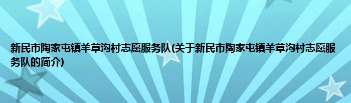 本文关于新民市陶家屯镇羊草沟村志愿服务队的简介就讲解完毕,希望对大家有所帮助。