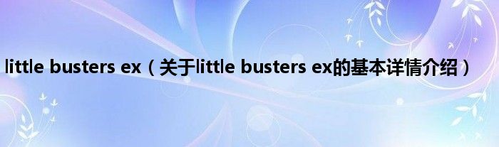 本文关于little busters ex的基本详情介绍就讲解完毕,希望对大家有所帮助。