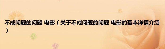 本文关于不成问题的问题 电影的基本详情介绍就讲解完毕,希望对大家有所帮助。