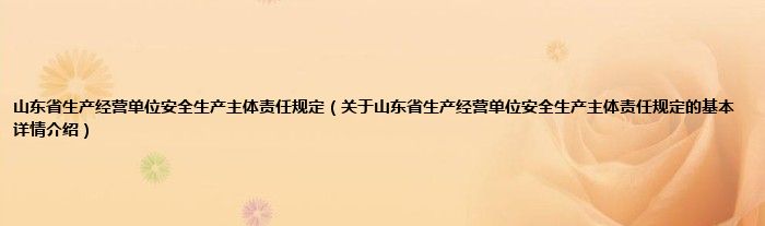 本文关于山东省生产经营单位安全生产主体责任规定的基本详情介绍就讲解完毕,希望对大家有所帮助。