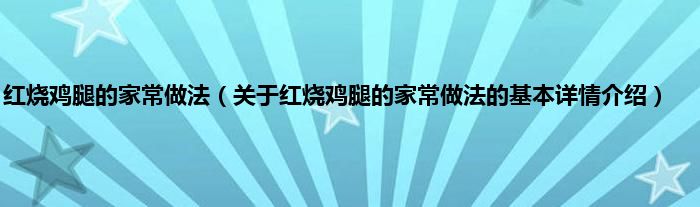 本文关于红烧鸡腿的家常做法的基本详情介绍就讲解完毕,希望对大家有所帮助。