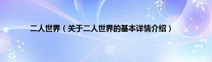 本文关于二人世界的基本详情介绍就讲解完毕,希望对大家有所帮助。