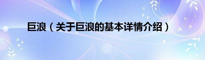 本文关于巨浪的基本详情介绍就讲解完毕,希望对大家有所帮助。