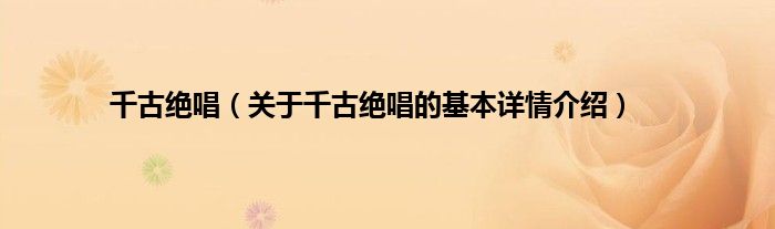 本文关于千古绝唱的基本详情介绍就讲解完毕,希望对大家有所帮助。