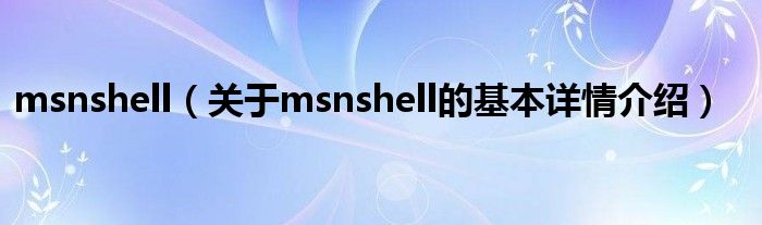 本文关于msnshell的基本详情介绍就讲解完毕,希望对大家有所帮助。