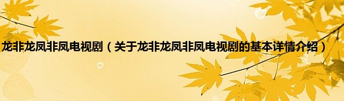 本文关于龙非龙凤非凤电视剧的基本详情介绍就讲解完毕,希望对大家有所帮助。