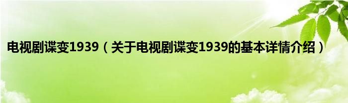 本文关于电视剧谍变1939的基本详情介绍就讲解完毕,希望对大家有所帮助。