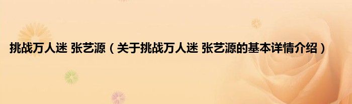 本文关于挑战万人迷 张艺源的基本详情介绍就讲解完毕,希望对大家有所帮助。