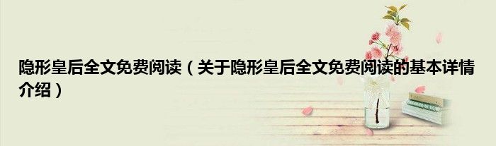 隐形皇后全文免费阅读(关于隐形皇后全文免费阅读的基本详情介绍)