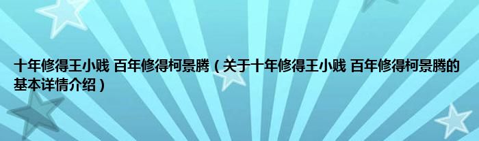 本文关于十年修得王小贱 百年修得柯景腾的基本详情介绍就讲解完毕,希望对大家有所帮助。