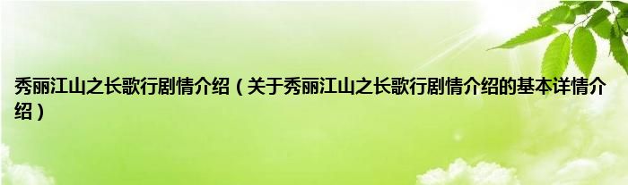 本文关于秀丽江山之长歌行剧情介绍的基本详情介绍就讲解完毕,希望对大家有所帮助。