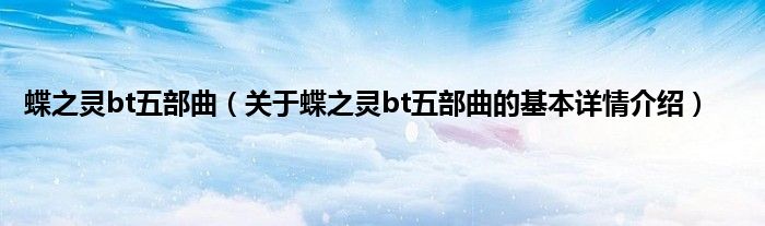 本文关于蝶之灵bt五部曲的基本详情介绍就讲解完毕,希望对大家有所帮助。