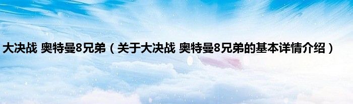 本文关于大决战 奥特曼8兄弟的基本详情介绍就讲解完毕,希望对大家有所帮助。