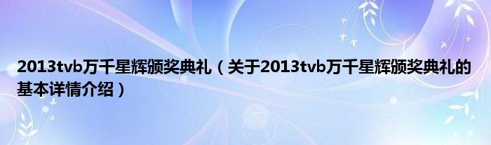 本文关于2013tvb万千星辉颁奖典礼的基本详情介绍就讲解完毕,希望对大家有所帮助。
