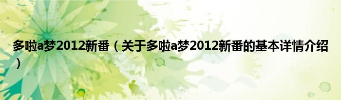 本文关于多啦a梦2012新番的基本详情介绍就讲解完毕,希望对大家有所帮助。