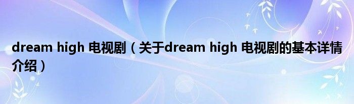 本文关于dream high 电视剧的基本详情介绍就讲解完毕,希望对大家有所帮助。