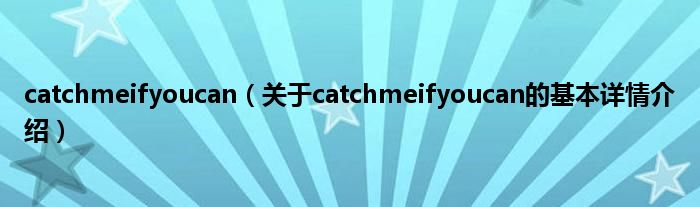 本文关于catchmeifyoucan的基本详情介绍就讲解完毕,希望对大家有所帮助。