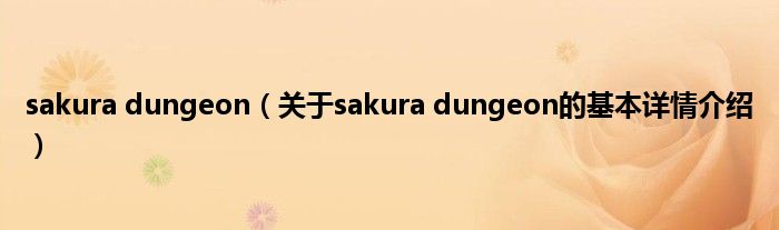 本文关于sakura dungeon的基本详情介绍就讲解完毕,希望对大家有所帮助。