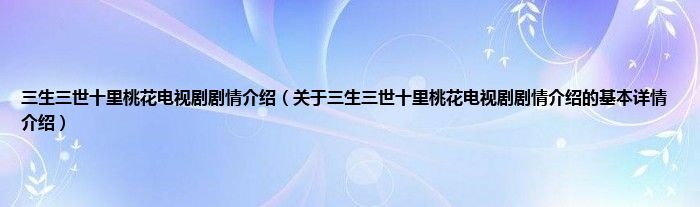 本文关于三生三世十里桃花电视剧剧情介绍的基本详情介绍就讲解完毕,希望对大家有所帮助。