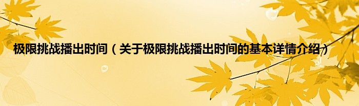 本文关于极限挑战播出时间的基本详情介绍就讲解完毕,希望对大家有所帮助。