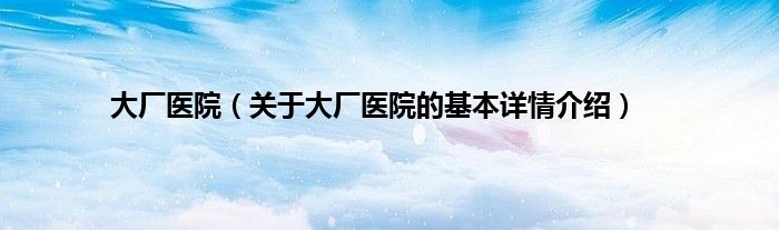 本文关于大厂医院的基本详情介绍就讲解完毕,希望对大家有所帮助。