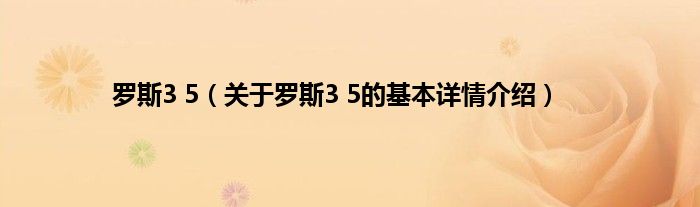 本文关于罗斯3 5的基本详情介绍就讲解完毕,希望对大家有所帮助。