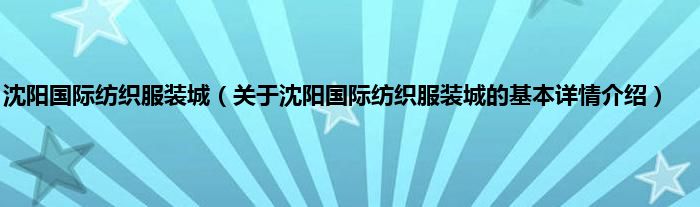 本文关于沈阳国际纺织服装城的基本详情介绍就讲解完毕,希望对大家有所帮助。
