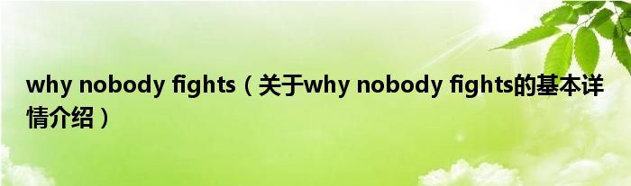 本文关于why nobody fights的基本详情介绍就讲解完毕,希望对大家有所帮助。