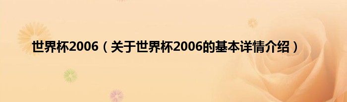 本文关于世界杯2006的基本详情介绍就讲解完毕,希望对大家有所帮助。