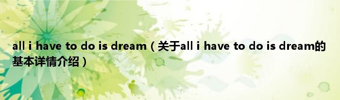 本文关于all i have to do is dream的基本详情介绍就讲解完毕,希望对大家有所帮助。