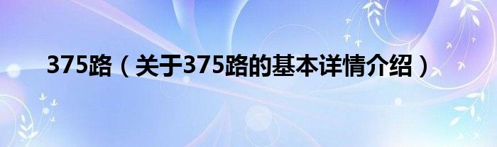 本文关于375路的基本详情介绍就讲解完毕,希望对大家有所帮助。