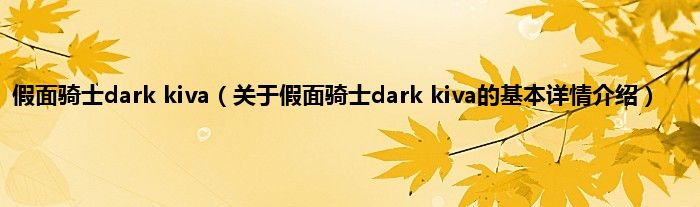 本文关于假面骑士dark kiva的基本详情介绍就讲解完毕,希望对大家有所帮助。