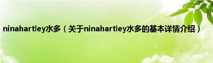 本文关于ninahartley水多的基本详情介绍就讲解完毕,希望对大家有所帮助。