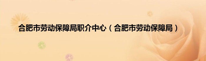 以上就是【合肥市劳动保障局职介中心,合肥市劳动保障局】相关内容。