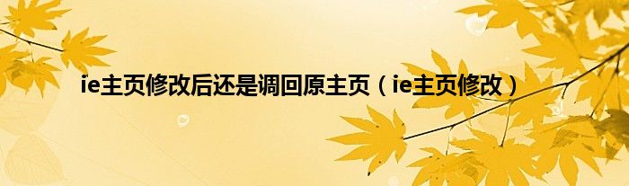 以上就是【ie主页修改后还是调回原主页,ie主页修改】相关内容。