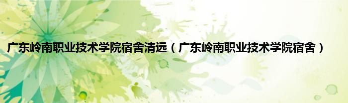 广东岭南职业技术学院宿舍清远(广东岭南职业技术学院宿舍)