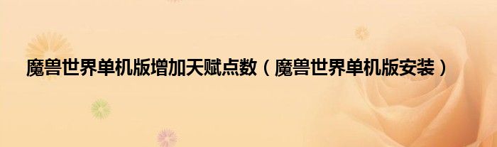 以上就是【魔兽世界单机版增加天赋点数,魔兽世界单机版安装】相关内容。