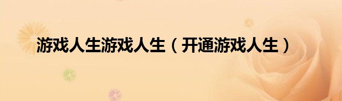 以上就是【游戏人生游戏人生,开通游戏人生】相关内容。