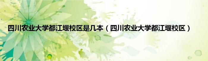 以上就是【四川农业大学都江堰校区是几本,四川农业大学都江堰校区】相关内容。