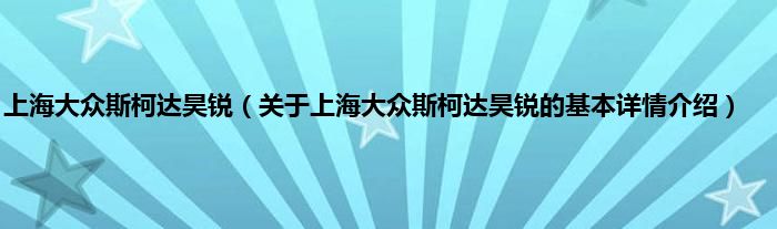 本文关于上海大众斯柯达昊锐的基本详情介绍就讲解完毕,希望对大家有所帮助。