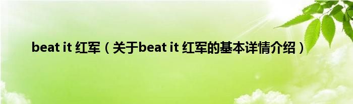 本文关于beat it 红军的基本详情介绍就讲解完毕,希望对大家有所帮助。