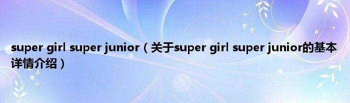 本文关于super girl super junior的基本详情介绍就讲解完毕,希望对大家有所帮助。