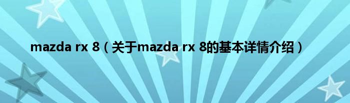 本文关于mazda rx 8的基本详情介绍就讲解完毕,希望对大家有所帮助。
