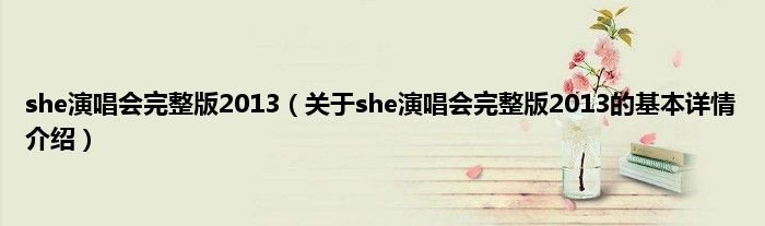 本文关于she演唱会完整版2013的基本详情介绍就讲解完毕,希望对大家有所帮助。