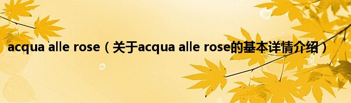 本文关于acqua alle rose的基本详情介绍就讲解完毕,希望对大家有所帮助。