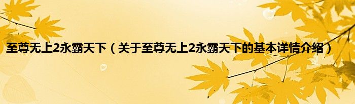 本文关于至尊无上2永霸天下的基本详情介绍就讲解完毕,希望对大家有所帮助。