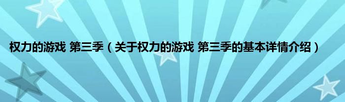 本文关于权力的游戏 第三季的基本详情介绍就讲解完毕,希望对大家有所帮助。